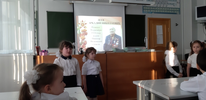 В преддверии праздника в школе №7 прошел Урок мужества "Мы помним! Мы гордимся!". Воспитанники подготовительной группы МБДОУ №4 рассказали ученикам 6"А"класса о жизни и фронтовых дорогах ветерана ДЕЕВА АРКАДИЯ НИКОЛАЕВИЧА.Большой интерес и отклик в душах ребят вызвала видео-презентация "Они сражались за Родину".Затаив дыхание ученики слушали песню "О той весне".На примерах безграничного мужества и беззаветной преданности Родине воспитатель Тельнова Елена Владимировна и классный руководитель Панова Елена Евгеньевна воспитывают наше поколение.